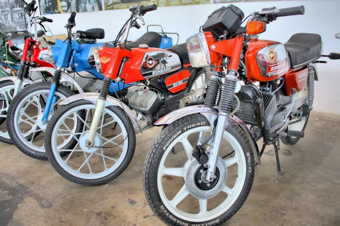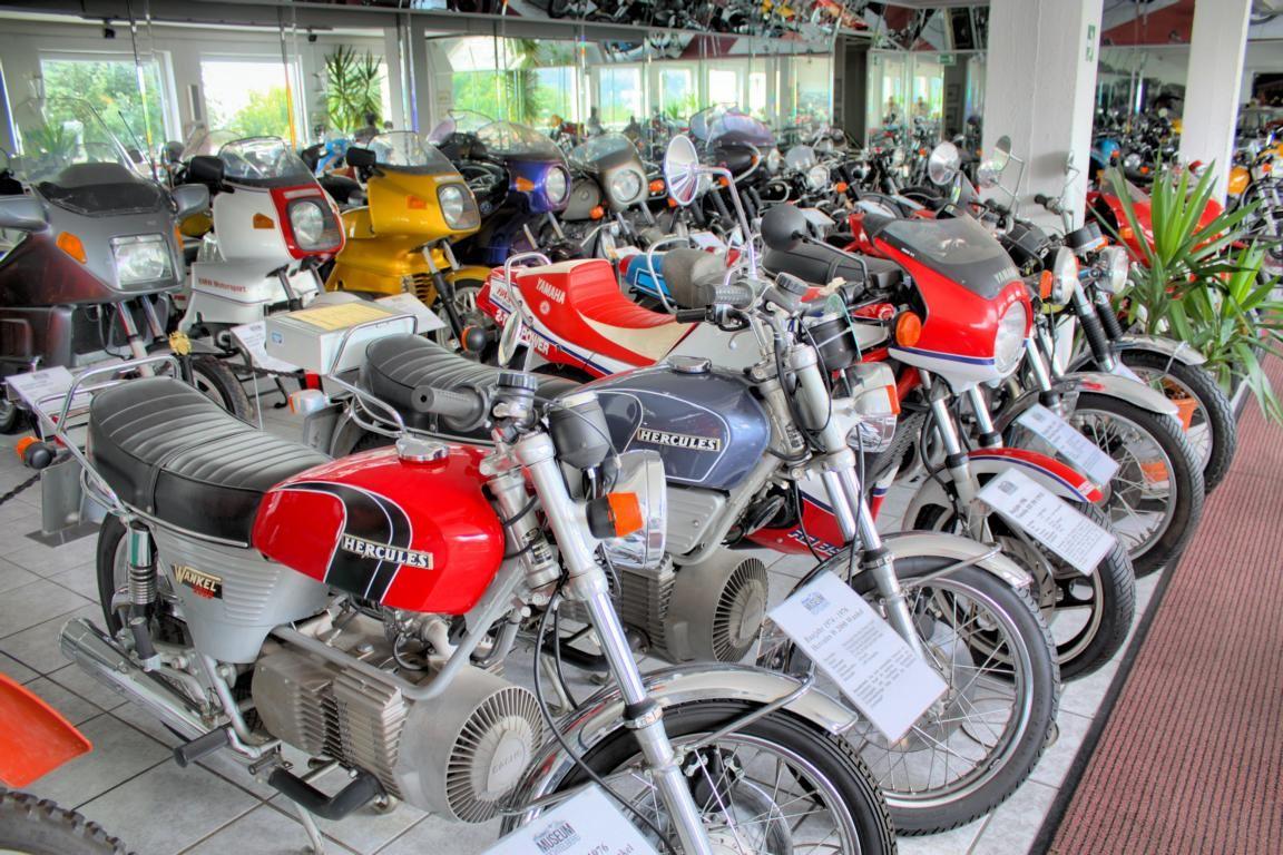 Motorräder sind überhaupt in einer extrem großen Zahl zu besichtigen. Ob Yamaha, Honda, BMW, Suzuki, Ducati, Moto Guzzi, Benelli oder Horex – auch Motorradfans kommen hier voll auf ihre Kosten. Besondere Schmankerl gibt es viele, herausgehoben seien jedoch die beiden Hercules-Maschinen, die von einem Wankelmotor angetrieben werden.