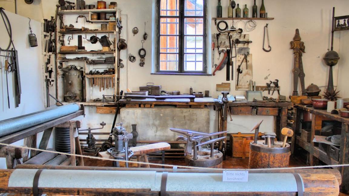 Gar 1504 ist erstmals das zum Museum gehörende Hammerwerk erwähnt, das 1890 sein heutiges Aussehen erhielt. Dieses Hammerwerk lässt jeden Besucher erstaunen, da es im Original erhalten ist und sogar an besonderen Tagen für Vorführungen in Betrieb geht. Angetrieben von Wasserkraft wird die Energie über Transmissionsriemen auf die einzelnen Maschinen übertragen, wodurch diese zum Leben erwachen.