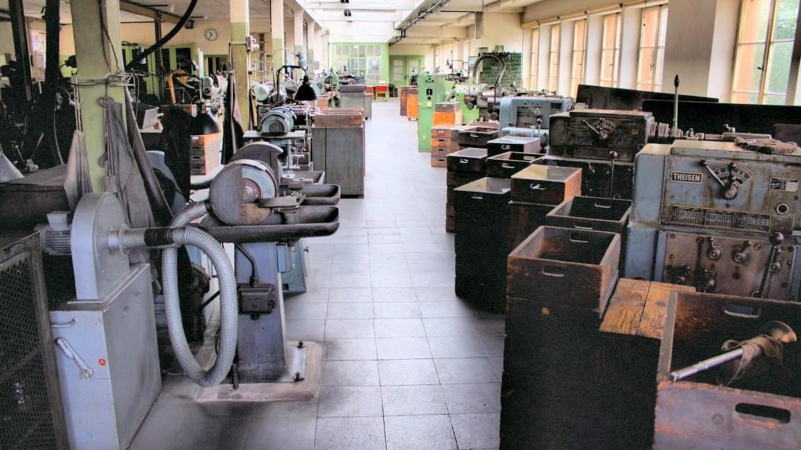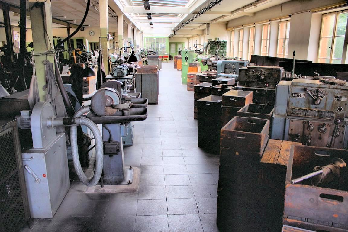 Man hat das Gefühl, die Fabrik könnte in recht kurzer Zeit wieder zum Leben erweckt werden, zumal hier alles erhalten ist, was solch ein Betrieb benötigt. Sogar das Rohstofflager ist teils noch erhalten, natürlich mit etlichen Metern Rundstahl. Es zeugen teils hochwertige Werkzeugmaschinen von einem Unternehmen, das ehemals zu den deutschen Perlen gehörte, die entscheidende Komponenten für Verbrennungsmotoren lieferten.
