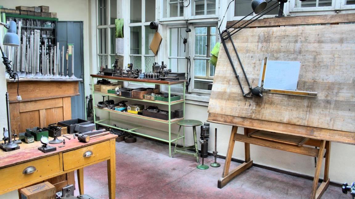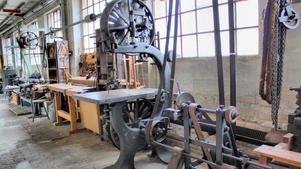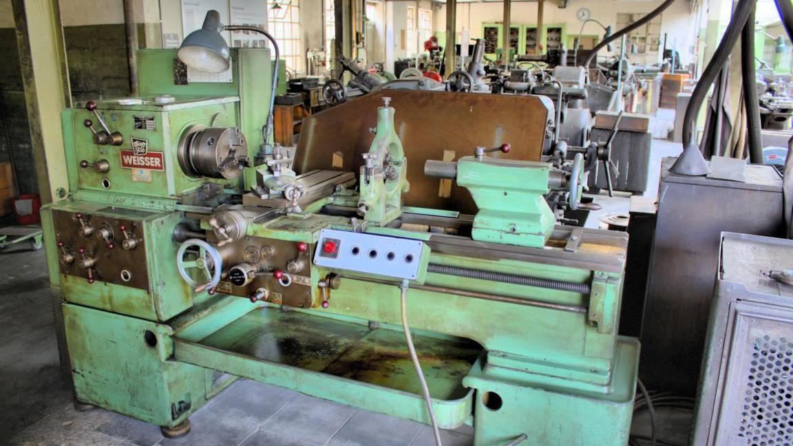 Tafeln an den einzelnen Maschinen erläutern deren Funktion, sodass auch Laien sich ein Bild machen können, was sie gerade vor sich haben. Eine ältere Leit- und Zugspindeldrehmaschine von Weisser wurde sogar mit Hinweisschildern versehen, die die Namen der einzelnen Baugruppen enthalten. Kein Wunder, dass so mancher Fachlehrer mit seinen Schülern hier vorbeischaut. Ein besseres Umfeld, Fachnamen zu vermitteln, wird sich schwer finden lassen.