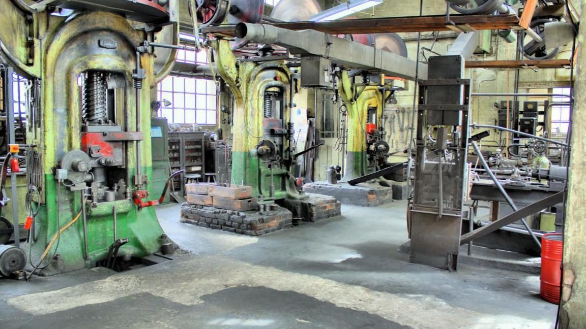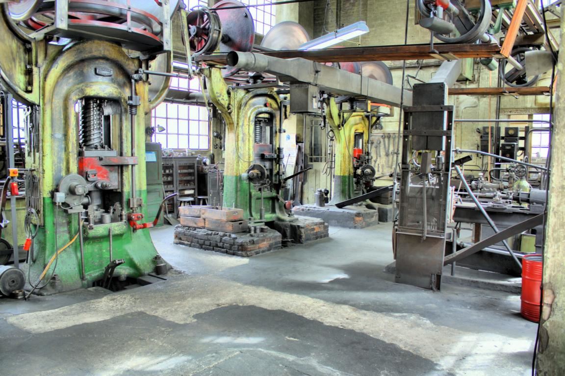 Da wären zum Beispiel die mächtigen Reibscheiben-Spindelpressen (die größte arbeitet mit 450 Tonnen Druck), mit deren Hilfe die glühend heißen Werkstücke ihre grobe Ventilform erhielten. Wer vor den Pressen steht, bekommt einen Eindruck davon, dass deren Bedienung sehr verantwortungsvoll war, da das Umschalten der Drehrichtung viel Erfahrung erforderte, sollte die Presse nicht beschädigt werden.