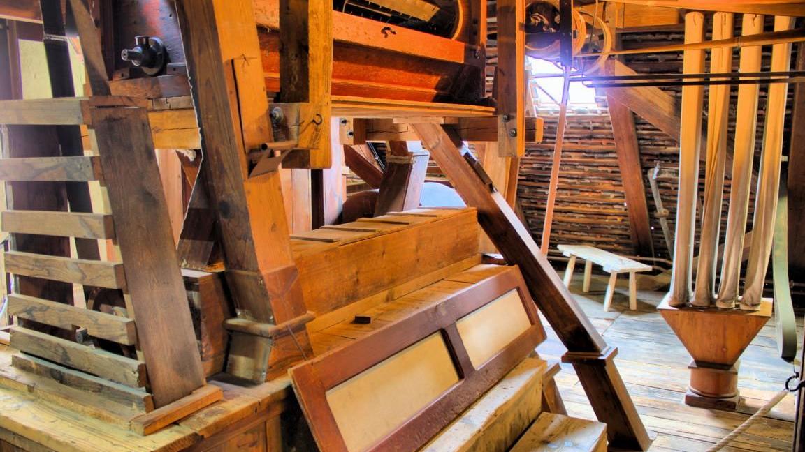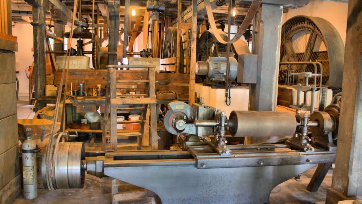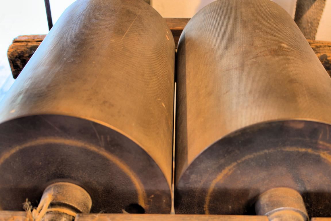 So sind beispielsweise im Walzenstuhl zwei Stahlwalzen eingebaut, die mit Rillen versehen sind. Diese Rillen haben die Aufgabe, das Getreidekorn aufzuschneiden. Mit der Zeit werden diese Rillen jedoch stumpf, weshalb sie nachgeschärft werden müssen. Die dazu nötige Riffelmaschine ist ebenfalls zu bestaunen. Damit konnte die Walze zunächst rundgeschliffen und anschließend mit zwei feststehenden Riffelstählen nachgeschnitten werden.