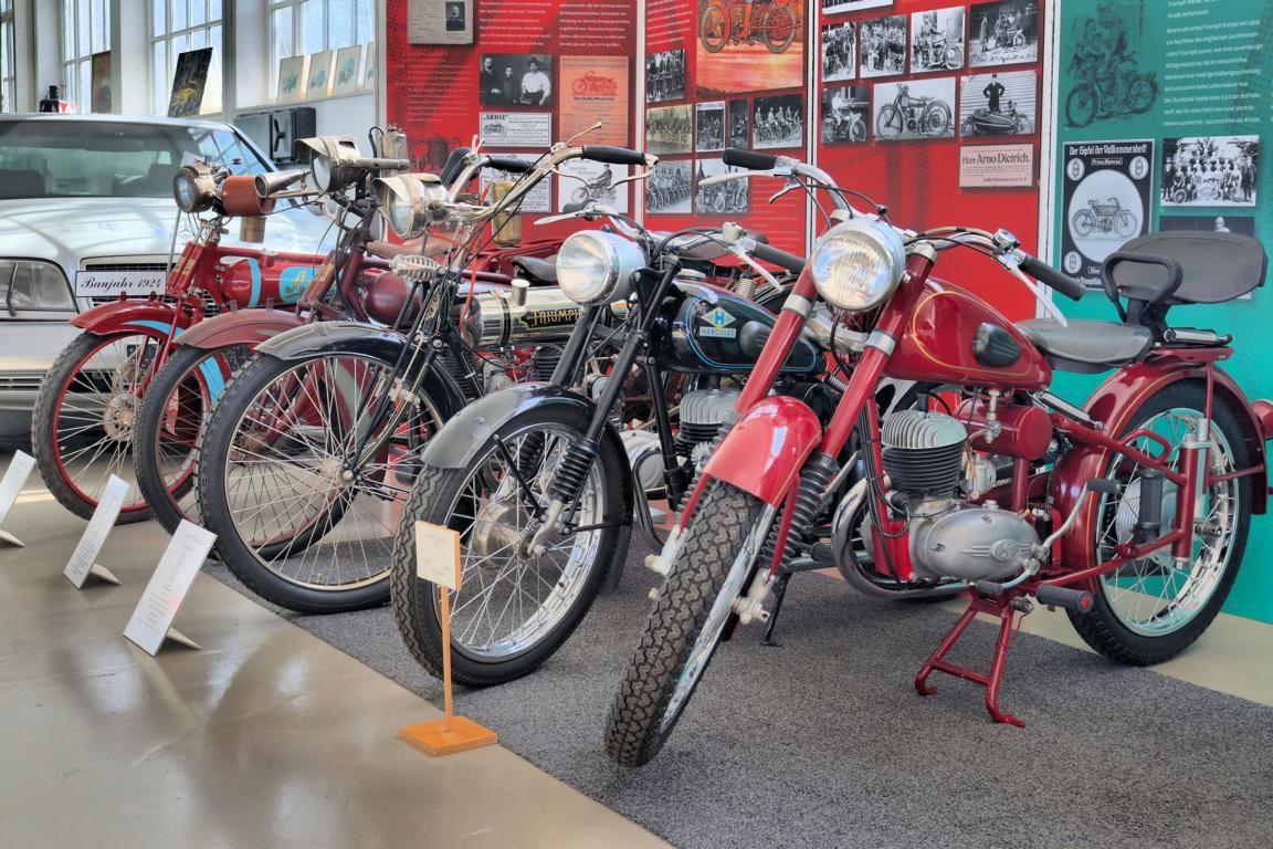 Wie bereits erwähnt, sind im Motormuseum auch viele Zweiräder zu bewundern, die ausschließlich von Nürnberger Unternehmen hergestellt wurden. So kann von Hercules beispielsweise das Modell ›320‹ aus dem Jahre 1954, die ›K50 Ultra‹ von 1977 und die ›ZX50 Cross‹ aus dem Jahr 1995 bewundert werden. Mit der ›XTC 125 Racing‹ aus dem Jahr 1998 ist sogar das letzte von Hercules gebaute Motorrad zu besichtigen.