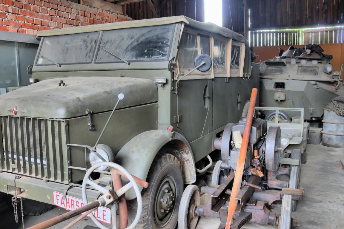 Dass das Bremer Unternehmen Carl F. W. Borgward GmbH hervorragende Automobile baute, ist wohlbekannt. Weit weniger bekannt ist, dass die neu gegründete Bundeswehr von diesem Unternehmen in den 1950er Jahren verschiedene Lkw-Modelle bezog, die unter anderem für den Bundesgrenzschutz eingesetzt wurden. So ein Fahrzeug, nämlich ein Modell ›B 2000‹ kann im Museum bestaunt werden. Dies ist ein offener Kübelwagen mit bis zu neun Sitzplätzen und steht dort in fahrbereitem Zustand. Ebenso fahrbereit ist ein geländegängiges Bundeswehr-Kraftrad vom Typ Maico M250/B aus den 1960er Jahren. Mit 14,5 PS erreichte es eine Höchstgeschwindigkeit von immerhin 96 km/h. Gleich daneben ist ein Bundeswehrkrad 175 zu sehen, das in den 1950er Jahren von DKW produziert wurde. Überhaupt gibt es viele Stücke aus der Nachkriegszeit zu sehen. So etwa einen 120 mm-Granatwerfer aus dem Jahr 1951, der eine Schussweite von 6650 Meter besaß. Staunenswert auch die Maschinenkanone ›L/90‹, die von Oerlikon produziert und im Flakpanzer ›Gepard‹ eingebaut wurde.