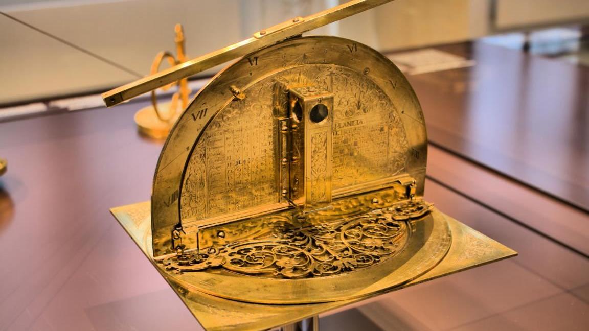Wer sich für das dahinterstehende Prinzip interessiert, findet im Mathematisch-Physikalischen Salon Antworten, die einfach nur verblüffen. Verblüffend auch der Ideenreichtum von Christoph Schissler, der bereits 1566 aus einem einfachen Zirkel ein Universalinstrument ersann, das als Sonnenuhr, als Maßstab und als Nivellierinstrument genutzt werden konnte.