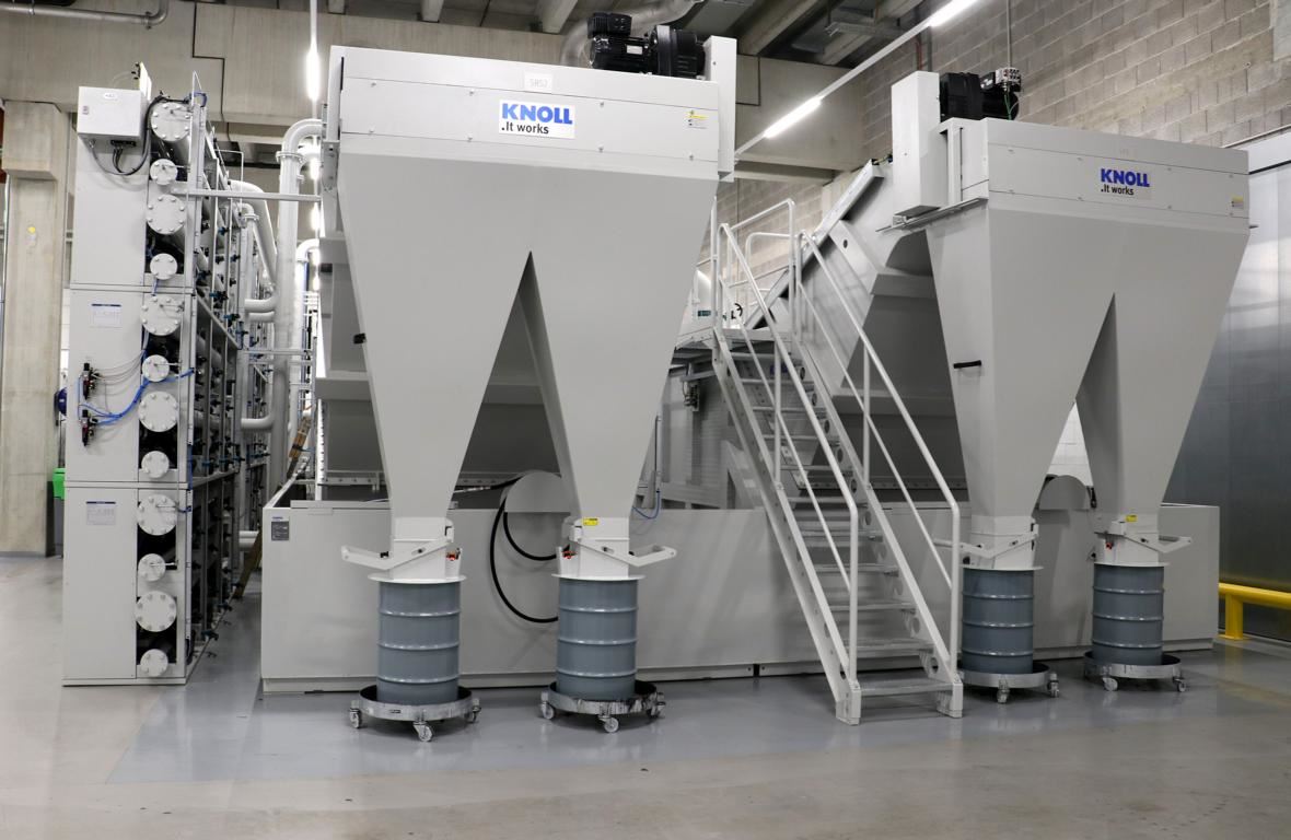 Zur Reinigung solcher KSS-Lösungen gestaltete KNOLL seinen MicroPur®-Filter „wassertauglich“. Das heißt, die Entwickler passten Filtergewebe und Modulgehäuse den speziellen Anforderungen an. Die Rückspülung wurde modifiziert und Prozessabläufe umprogrammiert. Zwei der ersten wassertauglichen MicroPur®-Module wurden 2017 bei CERATIZIT Austria installiert. Sie gehörten zu einer KNOLL Zentralanlage, bei der Hydrozyklone die groben Verschmutzungen und die MicroPur®-Filter im Bypass die feinen Verunreinigungen beseitigten.