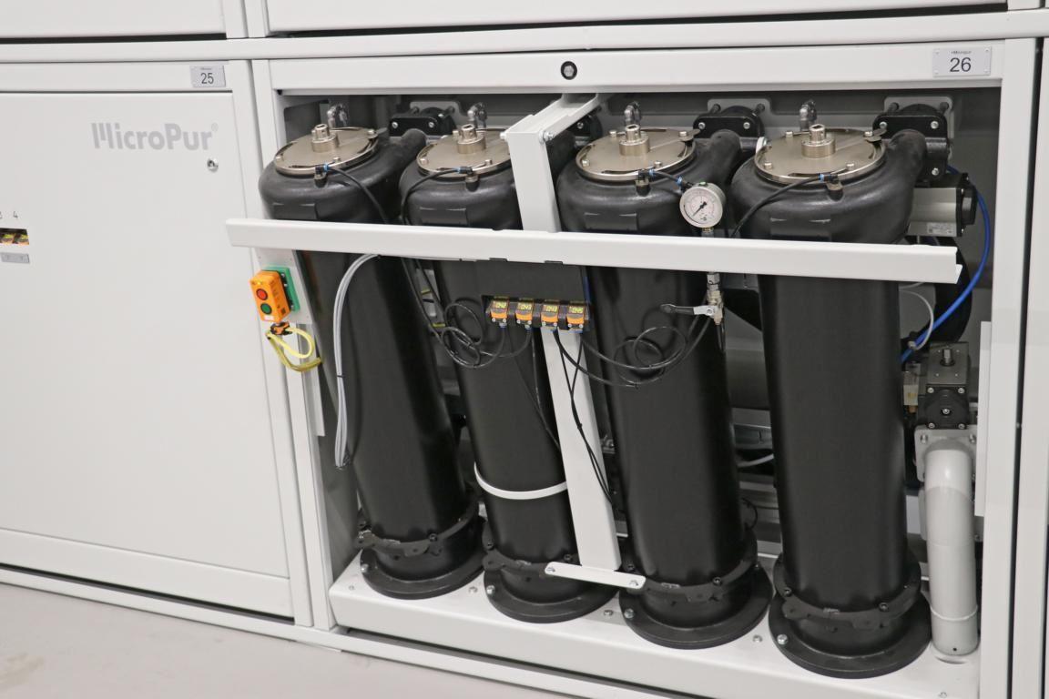 Stand Dezember 2023 sind 85 Maschinen zum Spitzenlosschleifen und Trennen der Hartmetallstäbe angeschlossen, wobei die Filterkapazität für weitere 85 Maschinen reicht. „Wir haben die Anlage daher nicht komplett befüllt,“ sagt Instandhaltungsgruppenleiter Anton Pfanner. „Die MicroPur®-Einheiten sind jedoch in der Regel alle in Betrieb, da die Anlage – je nach eingeschalteten Maschinen und Durchfluss – deren Einsatz automatisch steuert.“