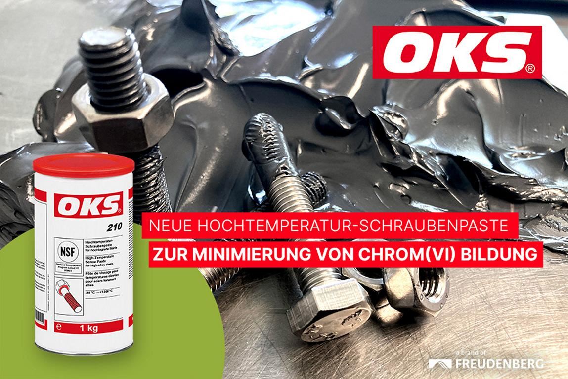 Das Team der OKS Spezialschmierstoffe GmbH, Kompetenzführer für nachhaltige Schmierstoffe, hat eine Schrauben-/ Montagepaste entwickelt, die bei der Anwendung auf chromhaltigen Stählen die Bildung von Chrom (VI) stark reduziert. Die Produktneuentwicklung ist Ergebnis eines aufwändigen F&E-Prozesses, der den Arbeitsschutz und die Anwendersicherheit bei einem der meistgenutztesten Industrieschmierstoffe deutlich erhöht.