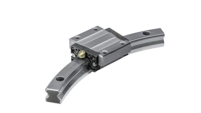 „Um das Schleifaggregat sicher und präzise von oben nach unten und zurück für die Fasengeometrie zu verfahren, kommt eine Kreisbogenführung von THK mit einem Radius von 600 Millimetern zum Einsatz. „Im Gegensatz zu Gleitführungen oder Kurvenrollen ermöglicht diese Baureihe eine spielfreie, hochgenaue Kreisbewegung von fünf Metern und darüber hinaus“, erläutert Indunorm-Experte Bauer.