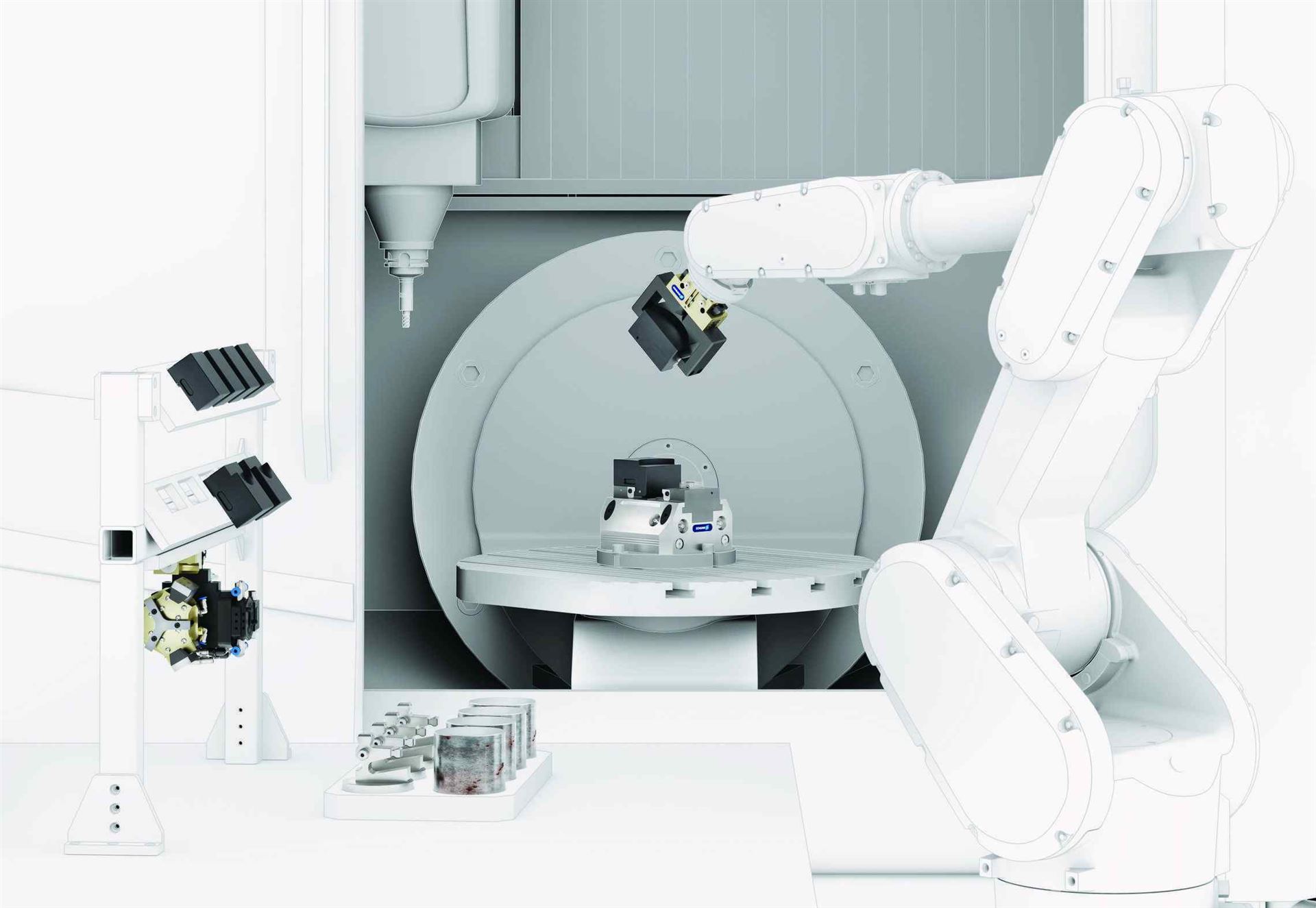 Mit den TANDEM BWA Kraftspannblöcken ist es möglich, kleine Losgrößen unterschiedlicher Werkstücke voll automatisiert zu spannen. Die Spannbacken der neuesten Kraftspannblock-Generation können mit dem Roboter flexibel gewechselt werden. Dies führt zu enormen Verkürzungen der Rüstzeiten, insbesondere bei Mehrfachanwendungen und Aufspanntürmen.