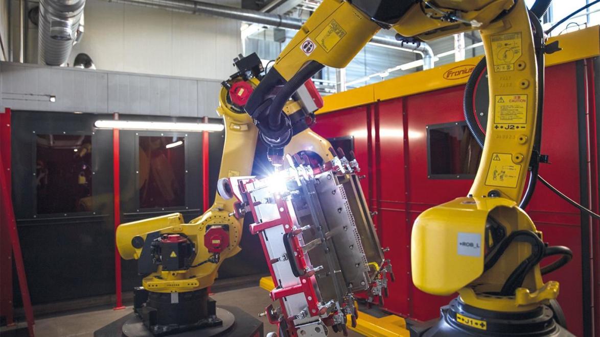 Ist der 17,5-minütige Schweißzyklus beendet, legt der Handling-Roboter das Bauteil in der Schleuse ab und die Schweißzelle sendet ein Fertigstellungssignal an das MES-System. Noch während die eine Schleuse entleert wird, kann in der anderen bereits der nächste Job starten.