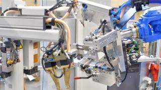 Christoph Desch: „Wie komplex solche Anlagen sind, hängt von der jeweiligen Aufgabenstellung und nicht zuletzt von den Bauteilgeometrien und der Zugänglichkeit der einzelnen Fügestellen ab: Für das Punktschweißen und Bördeln von vorgeformten Edelstahlmantelblechen an Abgasanlagen haben wir beispielsweise eine Roboterschweißzelle mit 13 Roboterstationen gebaut. Die Bauteile und Isolierschalen werden in eine Spannvorrichtung auf einem Kipp-Dreh-Positionierer eingelegt. Verschiedene Roboter verschweißen die Teile im Durchlauf - je nach Zugänglichkeit mit Mikrozangen oder Stoßpunktern. Damit das Bauteil für die jeweiligen Punkte richtig positioniert ist, transportiert es ein Handlingsroboter zu insgesamt vier Bauteilaufnahmen. Anschließend erfolgt das Bördeln und die Übergabe des Bauteils an die Montageanlage. Solche aufeinander abgestimmten Lösungen ermöglichen dem Anwender ein präzises und schnelles Verschweißen von Abgasstrangisolierungen. Dank des hohen Automatisierungsgrades und der damit verbundenen Produktivitätssteigerung können die Zulieferer so dem weltweiten wirtschaftlichen Druck souverän begegnen“.