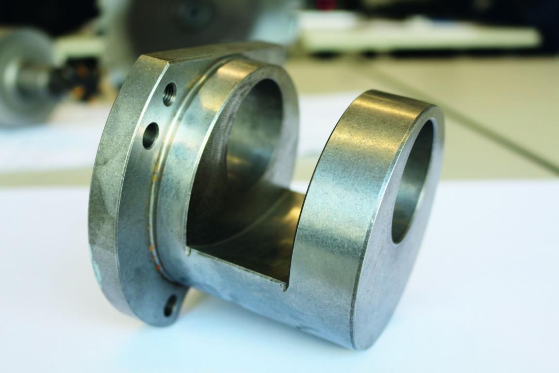 „Die Anlage steht nun aber leider nicht mehr zur Verfügung“, skizziert Greulich. „Wir versuchten mit dem Scheibenfräser und einer dynamischeren Anlage mit weniger Drehmoment weiterzuarbeiten.“ Das brachte aber kein zufriedenstellendes Ergebnis. „Die kleinere Maschine war absolut am Limit. Wir hatten so starke Vibrationen, dass sie sich sogar auf nebenstehende Anlagen auswirkten. Dazu kam ein erhöhter Verschleiß, vermehrte Plattenbrüche, Maschinenausfälle und eine immense Geräuschentwicklung“, erklärt Thorsten Schulz, der als Vorplaner bei Heidelberg die Arbeitsabläufe festlegt. „Wir mussten schließlich mit einem schmaleren Scheibenfräser, mit geringerem Abtrag und zehn statt vier Schnitten arbeiten. Das half zwar, dauerte aber viel zu lange.“ Zweieinhalb Minuten standen pro Bauteil auf der Uhr. Eine bessere Lösung musste her, und zwar möglichst schnell. Die Lagerbuchsen sind zentrale Komponenten einer Druckmaschine. Sie werden mit Exzenterbolzen an der Seitenwand montiert und dienen zur Zylinderverstellung. Der Spielraum, um neue Ideen auszuprobieren, war dementsprechend klein.