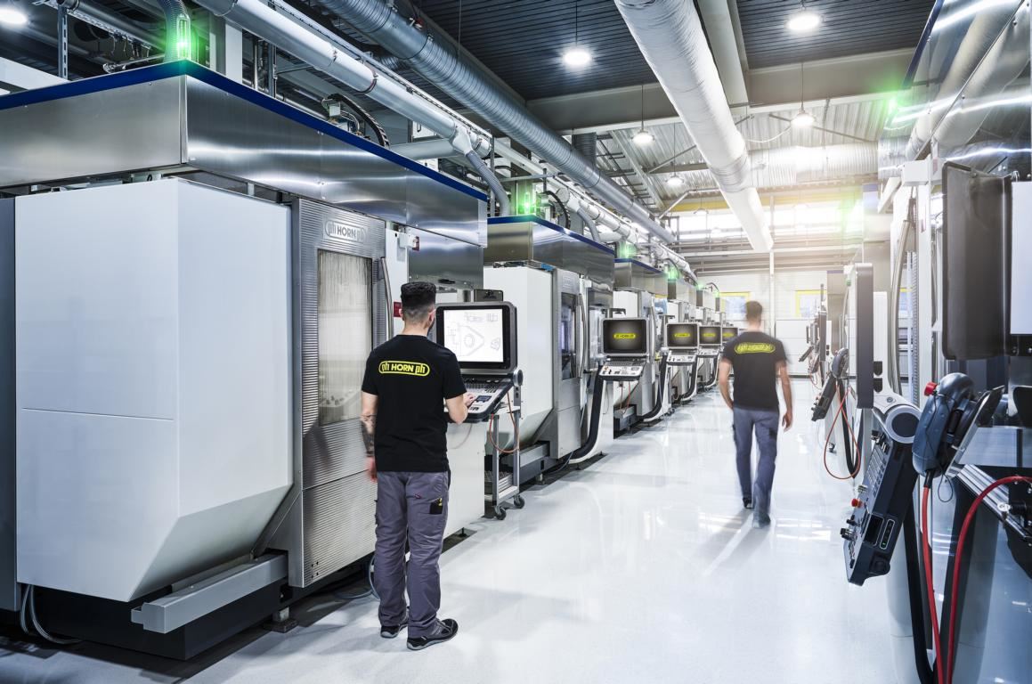 Horn hat bereits den Großteil des Maschinenparks mit Produktionskapseln ausgerüstet. Die Flexibilität und Skalierbarkeit des Konzepts erlauben die schnelle Anbindung von unterschiedlichsten Anlagen. In der Produktion des Präzisionswerkzeugherstellers sind das weltweit rund 600 Maschinen und Anlagen. Hinzu kommen Geräte aus anderen Bereichen, zum Beispiel aus der Gebäudeleittechnik. Die Mehrwerte zeigen sich bei den vielfältigen Herausforderungen der unterschiedlichen Geschäftseinheiten: Für die IT sinkt der Administrationsaufwand, da die Fernwartung automatisiert ist und der Anlagenbediener diese selbst per Schlüsselschalter aktivieren kann. Die IT-Sicherheit erhöht sich durch die netzwerkseitige Isolation der Anlagen – die Kompromittierung einer einzelnen Maschine hat keine Auswirkung auf die restliche Produktion. Der hauseigene Maschinenbau und die Instandhaltung profitieren von einer überschaubaren Lagerhaltung und der Langzeitverfügbarkeit der verbauten und standardisierten Hardware.