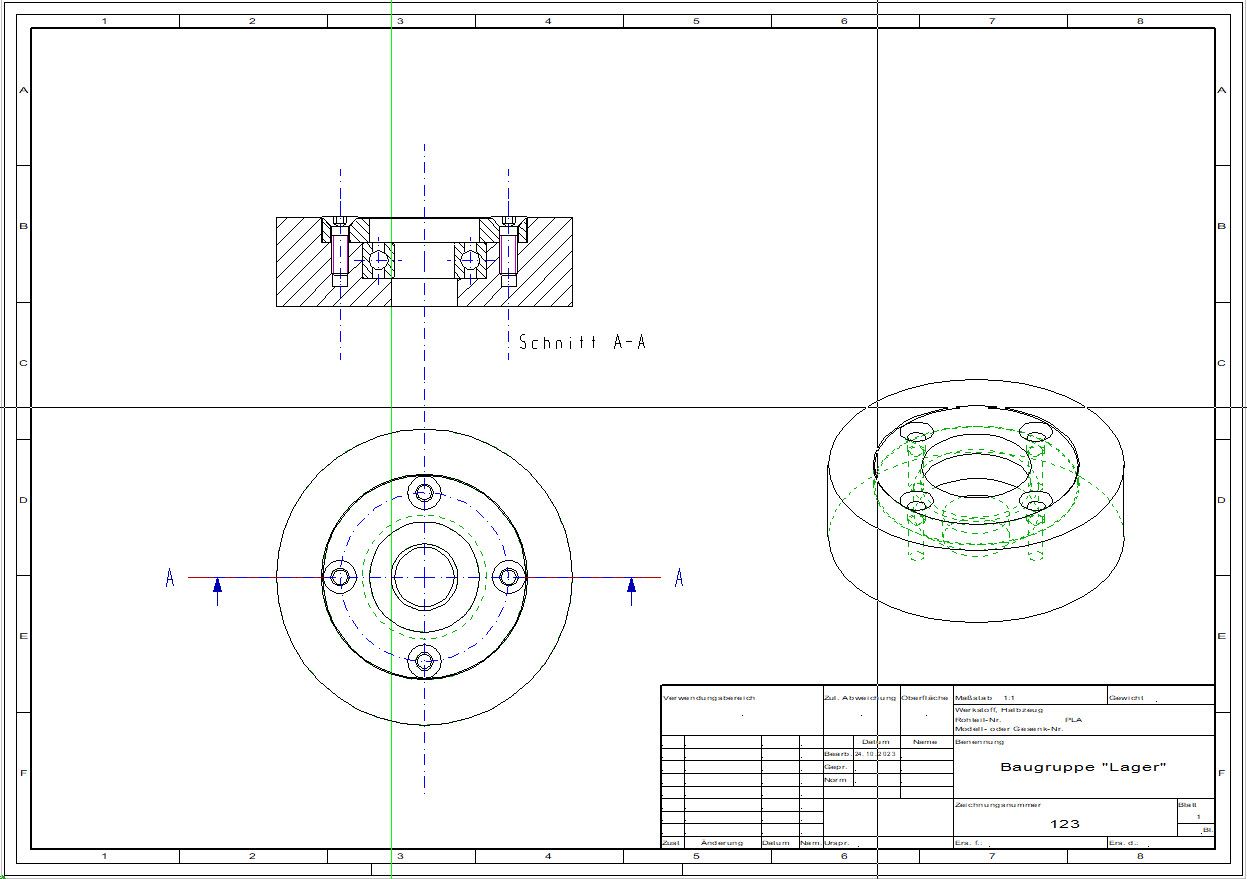 Ist alles korrekt umgesetzt worden, so wird ein Vollschnitt durch die Baugruppe wie unten dargestellt erzeugt.