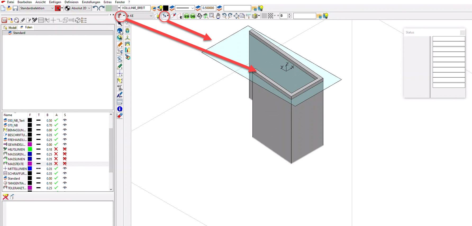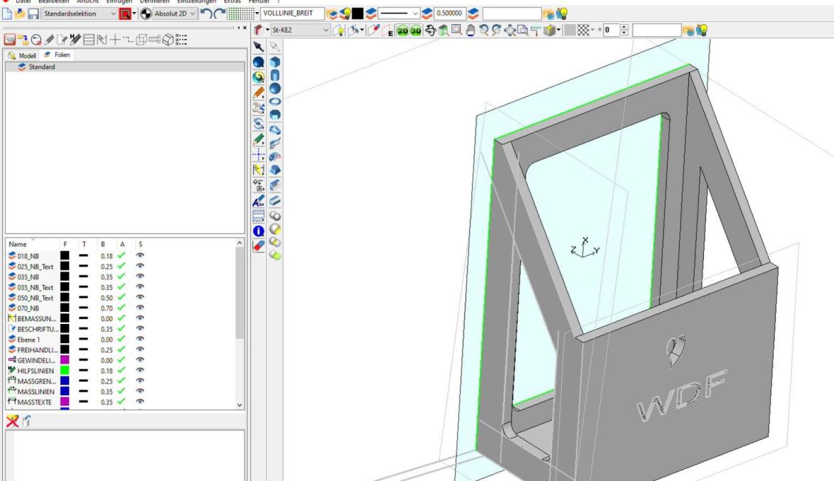 Anschließend kann die 2D-Kontur mittels der Funktion „Schiebekörper Z“ in die dritte Dimension hochgezogen werden.