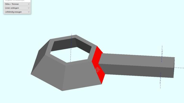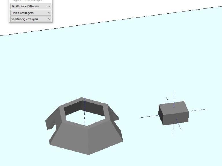 Diese Funktion ist sehr praktisch, um rasch Durchbrüche, Ausklinkungen etc. zu erzeugen. Zu beachten ist, dass die Zielfläche, bis zu der die Extrusion erfolgen soll, exakt definiert wird.