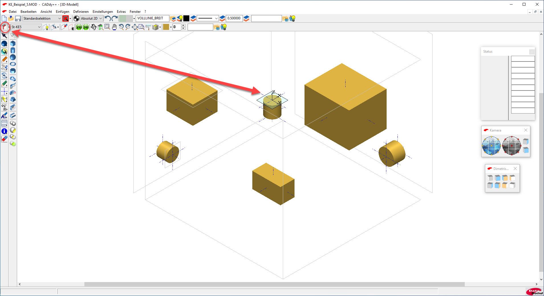 Über den Button „KE aktivieren“ kann eine andere Konstruktionsebene aktiv geschaltet werden, wozu nach Betätigung dieses Buttons lediglich eine Rahmenlinie der gewünschten Konstruktionsebene anzuklicken ist.