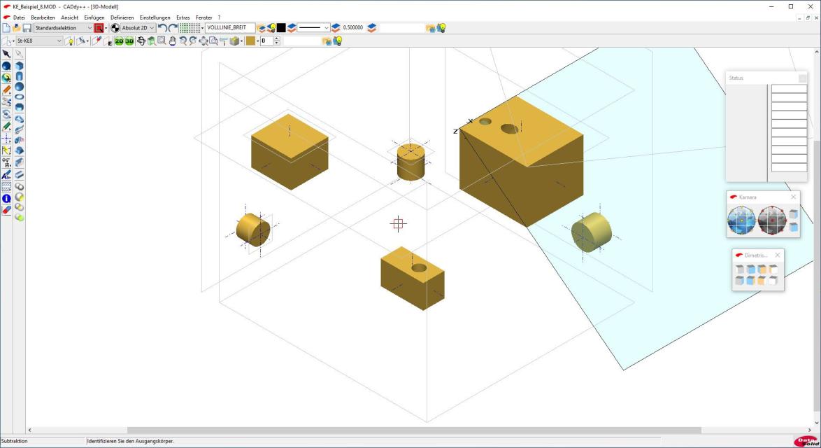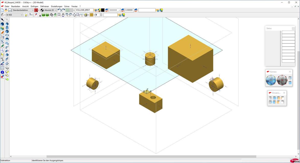 Das Resultat ist ein geschnittener 3D-Körper, auch wenn die Schnittebene vermeintlich außerhalb des Schnittbereichs liegt.