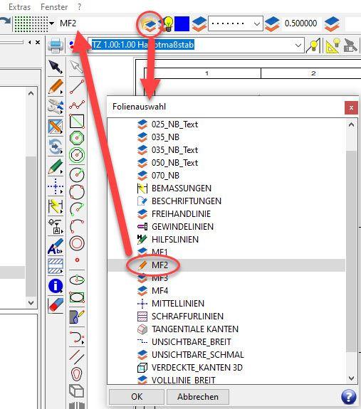 Wichtig zu wissen ist, dass Folien nur im 2D-Bereich anwendbar sind. Eine Neuanlage ist nur dann sinnvoll, wenn die bereits serienmäßig vorhandenen Folien nicht ausreichen. So ist es beispielsweise möglich, eine Folie anzulegen, in die Hilfskonstruktionen eingezeichnet oder Prüfansichten erzeugt werden, die je nach Bedarf aus- und eingeblendet werden.