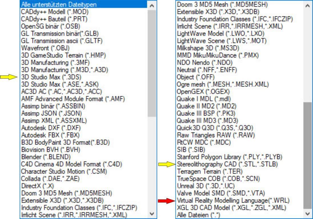 Zwar besitzt BeckerCAD eine ganze Reihe an einlesbaren Formaten, die jedoch nicht alle für den gewünschten Zweck, ein 3D-Volumenmodell einzulesen, geeignet sind.