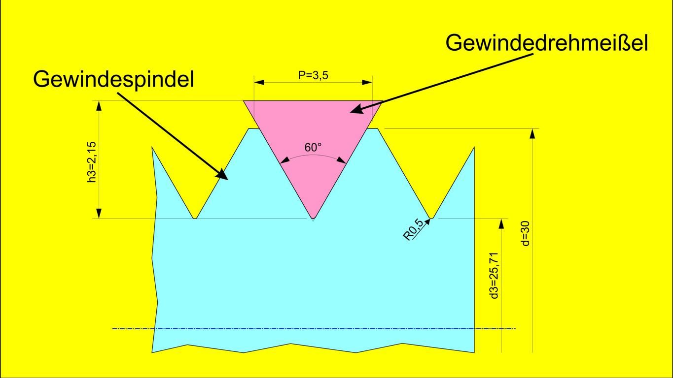 Fachleute erzeugen lange Gewindespindel üblicherweise mit einem Gewindedrehmeißel, der fest in einem Werkzeughalter eingespannt ist, während sich eine Welle dreht, in die das Gewinde eingeschnitten werden soll. Bei einem Konstruktionsprozess mittels eines 3D-CAD-Systems ist eine andere Technik nötig, damit ein Zylinder mit einem Gewinde versehen wird.