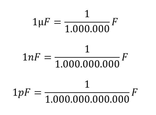 Gängige Angaben sind das Mikrofarad (µF), das Nanofarad (nF) und das Picofarad (pF).