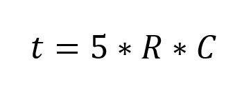 Der Kondensator ist demnach nach einer halben Sekunde leer. Um dies zu berechnen, muss berücksichtigt werden, dass auch beim Entladen eines Kondensators fünf Zeitkonstanten benötigt werden, bis dieser völlig entleert ist. Aus diesem Grund steht wiederum die Zahl 5 in der obigen Formel.