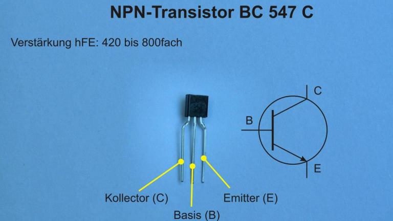 Der Transistor ist ein interessantes Stück Technik. Hier hat man es eigentlich mit einem Relais im Miniaturformat zu tun, was jedoch nur rudimentär stimmt, da ein Transistor anders funktioniert und zudem als Regler arbeiten kann. Ganz abgesehen davon, dass man damit in der Regel nicht ähnlich hohe Ströme schalten kann, wie dies mit einem Relais möglich ist. Zudem erlauben Relais getrennte Stromquellen für Steuer- und Arbeitskreis. Dennoch erstaunt der Transistor mit seinen Fähigkeiten. Bemerkenswert hohe Verstärkungsfaktoren zwischen 25 und 1000 zeigen, dass er angesichts seiner Größe Eindrucksvolles leistet.