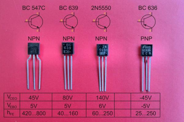 Transistoren sind für unterschiedliche Betriebsspannungen zu beziehen. Die Maximalwerte sind im Datenblatt unter der Angabe VCEO ersichtlich. In der Regel werden sie jedoch mit weit geringeren Spannungen betrieben. Sie können je nach Bauart Ströme bis zum 800fachen und mehr verstärken. Diesbezüglich der entscheidende Faktor ist der hFE-Wert. Der Wert VEBO gibt zudem an, wie groß die Eingangspannung an der Basis, genauer in der Strecke Emitter-Basis maximal sein darf. Diese liegt in der Regel stets zwischen fünf und sechs Volt und bildet die Grundlage für die Berechnung des korrekten Vorwiderstands für den jeweiligen Transistor.