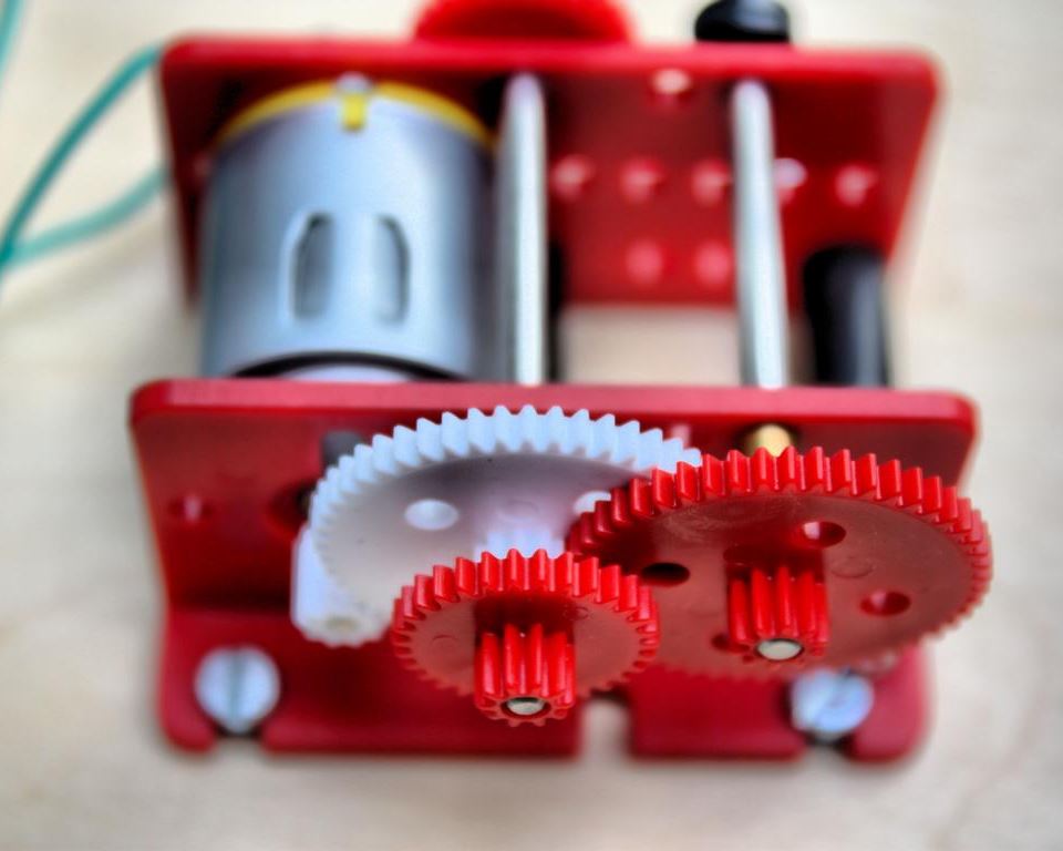 In diesem Beispiel ist die Schaltung derart ausgeführt, dass ein Motor solange in eine bestimmte Richtung dreht, bis die Lichtschranke unterbrochen wird. Ist dies der Fall, so wird der Motor durch das Umschalten des Relais seine Drehrichtung ändern und sofort wieder die ursprüngliche Drehrichtung einnehmen, wenn die Lichtschranke wieder freigegeben wird.