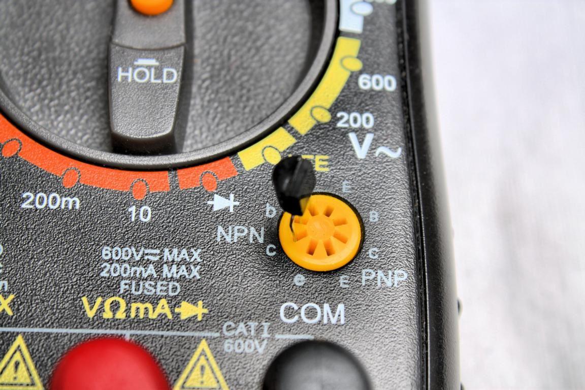 Um beim Aufbau von Schaltungsprototypen zumindest den Einbau defekter Bauteile zu vermeiden, sollten diese vor dem Verlöten auf Funktion getestet werden. Moderne Multimeter sind leider aus Sicherheitsgründen zumindest im Niederpreissegment nicht mehr mit einer Testfunktion für Transistoren ausgestattet. Steht jedoch ein Multimeter mit dieser Funktion zur Verfügung, so ist ein Transistortest schnell erledigt.