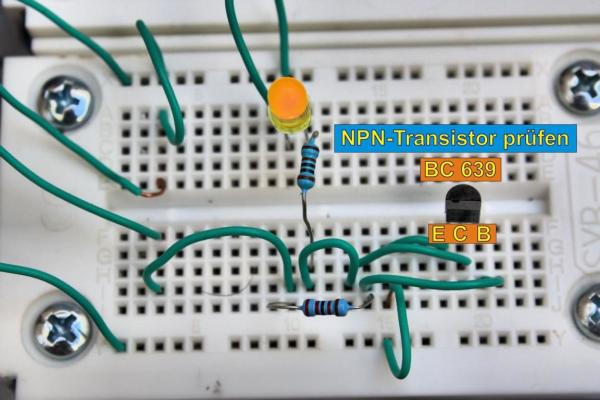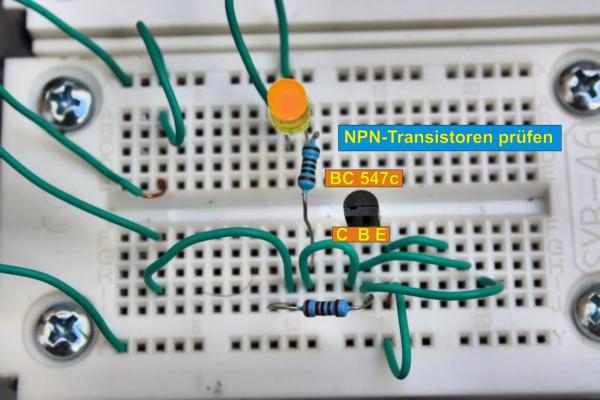 Im nebenstehenden Bild ist die Prüfung eines NPN-Transistors vom Typ BC 547c erkennbar.