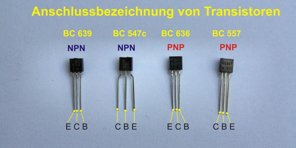 Wer qualitativ hochwertige Musterschaltungen aufbaut, achtet schon aus Funktionsgründen darauf, neue Elektronikbauteile zu verwenden. Auf deren Gehäuse sind in der Regel alle wichtigen Kenndaten in codierter Form oder im Klartext aufgedruckt, sodass mühelos erkannt werden kann, ob man einen NPN- oder einen PNP-Transistor vor sich liegen hat. Die speziellen Eigenschaften lassen sich dann aus den im Internet zugänglichen Wertetabellen der Hersteller oder der Elektronikhändler entnehmen.