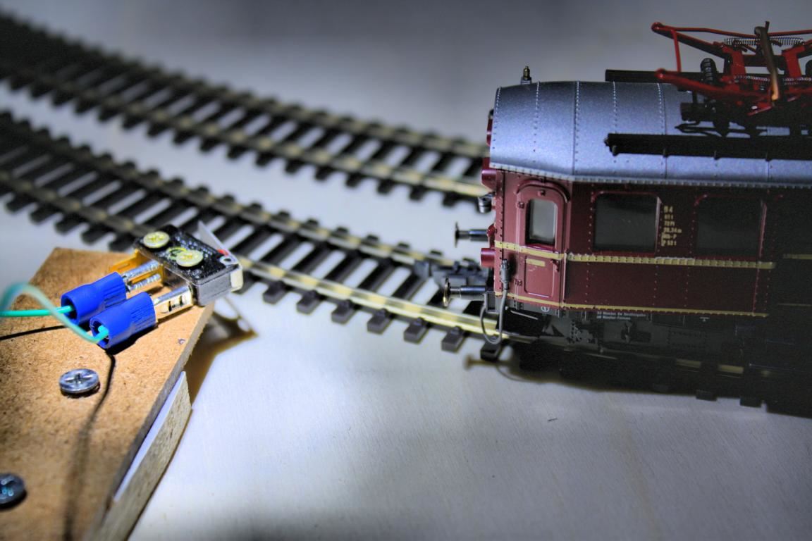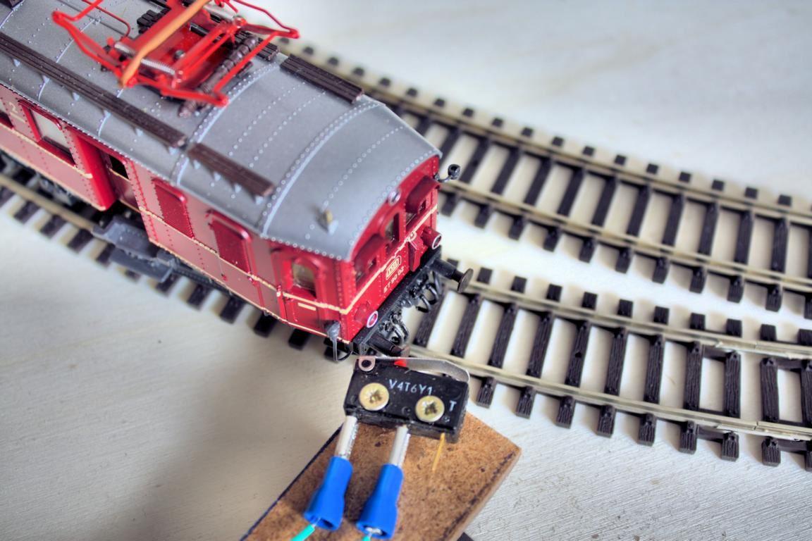 Jeweils an einem Ende des Verfahrweges ist ein Schalter derart anzubringen, dass dieser sicher betätigt wird. Im Fall einer Modelleisenbahn eignet sich beispielsweise der Puffer optimal dazu, den jeweiligen Schalter zu betätigen.