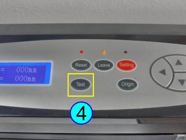 8 Test-Button: Durch Betätigen dieses Buttons wird eine kleine Testkontur ausgeschnitten, um die aktuellen Kraft- und Geschwindigkeitseinstellungen zu überprüfen. So können die optimalen Schnittgeschwindigkeits- und Krafteinstellungen für verschiedene Materialien ermittelt werden, ohne dazu große Materialmengen zu verschwenden.