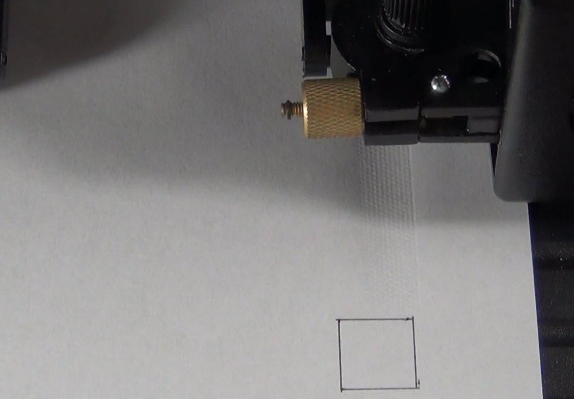 Es ist empfehlenswert, nach dem Festlegen des Nullpunkts einen kurzen Testschnitt durch Betätigen der Test-Taste durchzuführen, um sicherzustellen, dass die eingestellte Position sowie die Schnitt- beziehungsweise Zeichenparameter für das ausgewählte Material korrekt sind.