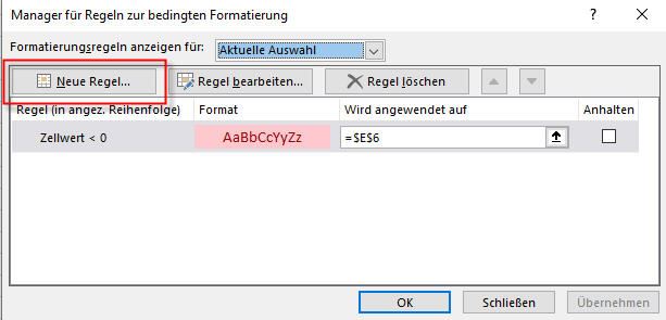 Nachdem alles abgeschlossen wurde, präsentiert sich die Bedingungsregel mit nun zwei Einträgen, die dafür sorgen, dass eine Zelle sich einem Ereignis entsprechend präsentiert.