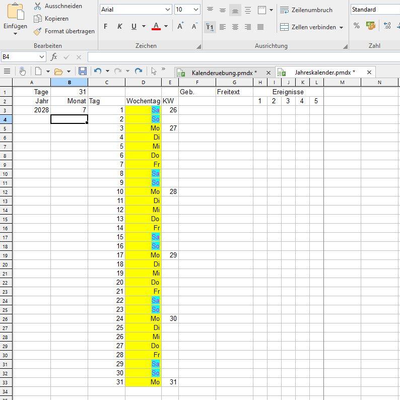 Ob Privat oder im Büro – Jahreskalender erfreuen sich großer Beliebtheit. Diese werden oft mit Zusatzinformationen, wie etwa Geburtstagen, Urlaubszeiten oder Eventterminen ergänzt. Da diese Arbeiten jedes Jahr anfallen und zum Eintragen ein gewisser Zeitaufwand nötig ist, macht es Sinn, einen derartigen Kalender selbst zu erstellen.
