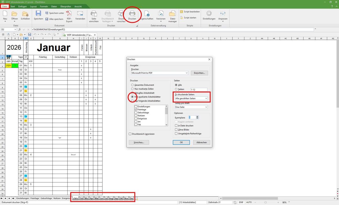 Der nachfolgende Button erlaubt den Download eines Kalenders im pmdx-Format von Planmaker. Diese Datei ist ungeschützt und kann für eigene Zwecke frei angepasst werden. Da keine Makros verwendet wurden, sollte die Tabelle auch mit der FreeOffice-Version von Planmaker funktionieren.