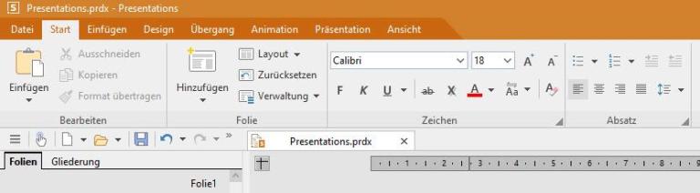 Die Anordnung und Ausgestaltung der Ribbon-Leiste unterscheidet sich nur wenig von derjenigen der Konkurrenz. Es sind sogar wesentliche Feinarbeiten getätigt worden, die dafür sorgen, dass der Umgang mit Presentations flüssig vonstattengeht.