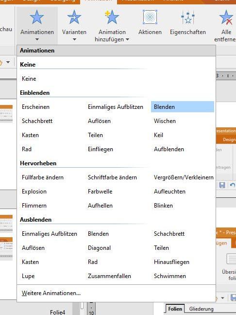 Hinsichtlich der Übergangseffekte kann Presentations mit einem ähnlich umfangreichen Fundus wie Powerpoint aufwarten, sodass damit ebenso problemlos spannende und lehrreiche Präsentationen erstellt werden können.