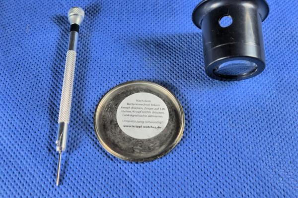 Obwohl diese Beträge nicht besonders hoch sind, reizt es so manchen Uhrenliebhaber, den Batteriewechsel selbst vorzunehmen. Doch Vorsicht! Nur wer über das dazu nötige Werkzeug verfügt, sollte sich an diese Aufgabe wagen! Ist dieses Werkzeug nicht vorhanden, so ist mit Anschaffungskosten von 35 bis 50 Euro zu rechnen, da auch eine kleine Handpresse anzuschaffen ist, um bei Sprungdeckeluhren den Bodendeckel nach dem Batteriewechsel wieder auf das Gehäuse zu pressen. Die Handkraft reicht dazu in der Regel nicht aus!
