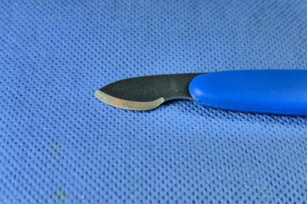 Dieses Öffnungswerkzeug wird an derjenigen Stelle angelegt, an der sich die kleine Nase des Deckels befindet. Diese dient dazu, dem Öffnungswerkzeug Halt beim Öffnungsvorgang zu geben.